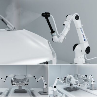 HANS Elfin Cobot Automotive Spraying Solution является совместной робототехнической системой, предназначенной для автомобильной краски и поверхностного покрытия.,Эльфинский кобот подходит для покраски кузова автомобиля, распыления автомобильных деталей,и гибкие производственные линии, которые требуют постоянного качества покрытия и быстрого развертывания.